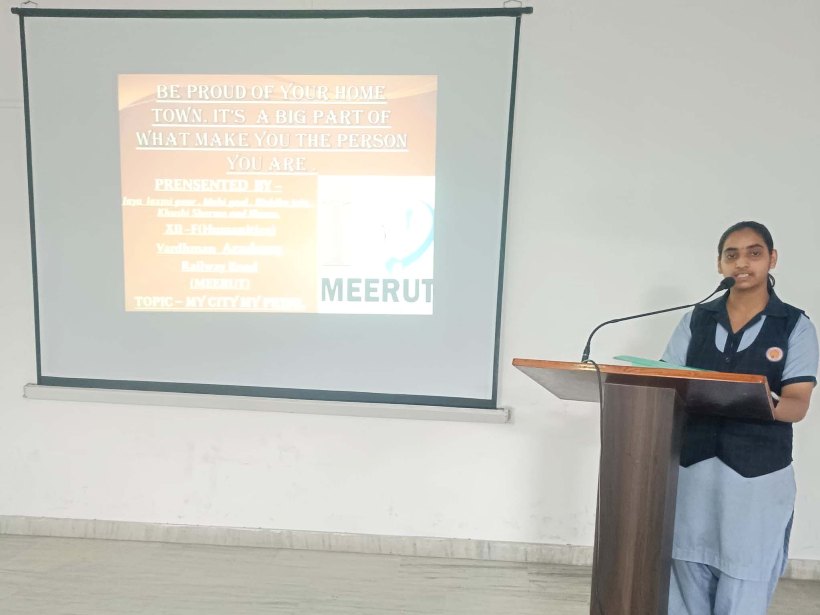 A Powerpoint presentation activity was conducted by students of class XII on the topic "My city My pride".It aimed to celebrate the unique aspects of the city and fostered a sense of pride and belonging among students. It showcased various things in the city that contribute to its popularity and heritage.The presentations focused on historical landmarks ,cultural heritage and natural attractions.The students gained a better understanding of their own city and developed connection with their roots.This activity was a great success as students participated with all enthusiasm. It fulfilled the purpose of nurturing civic sense and local pride among students. Our esteemed Principal Mrs Rupali Chaudhary encouraged the students and appreciated their efforts.