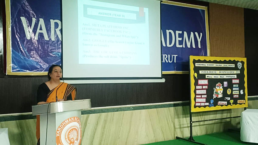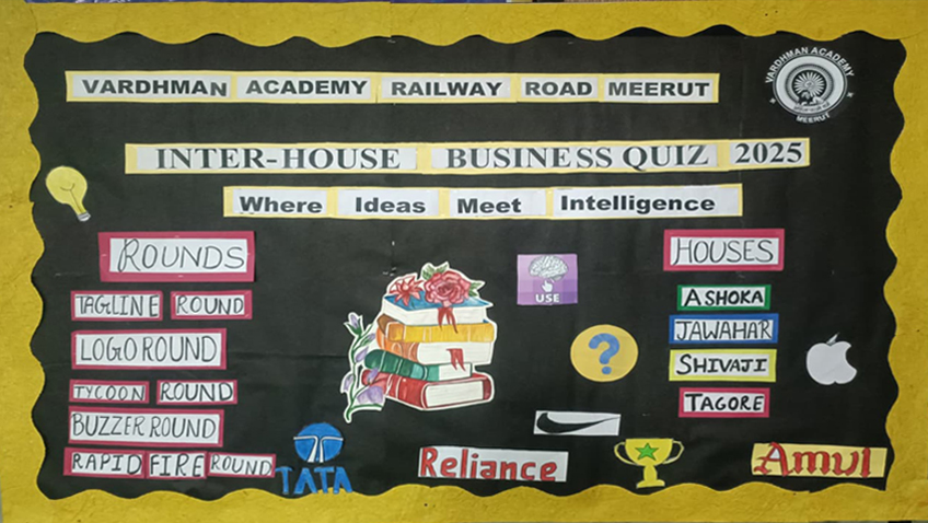 The Commerce Department of Vardhman Academy, Railway Road, Meerut organized an Inter-House Business Quiz Competition on 29th October, 2025, aiming to spark curiosity and awareness among students about the dynamic world of business and finance.