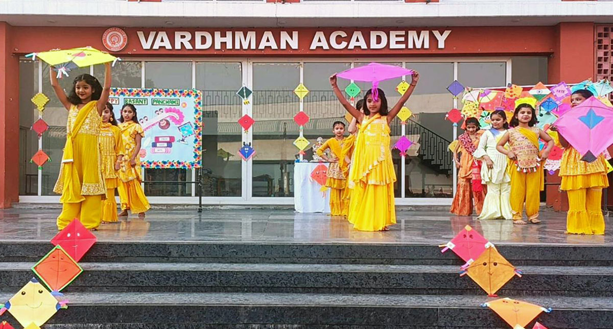 Basant Panchami, the festival that marks the arrival of spring and is dedicated to Goddess Saraswati, was celebrated with immense joy and enthusiasm at VARDHMAN ACADEMY RAILWAY ROAD, MEERUT on Ist February2025. The event was a grand success, with active participation from students, teachers, and staff.