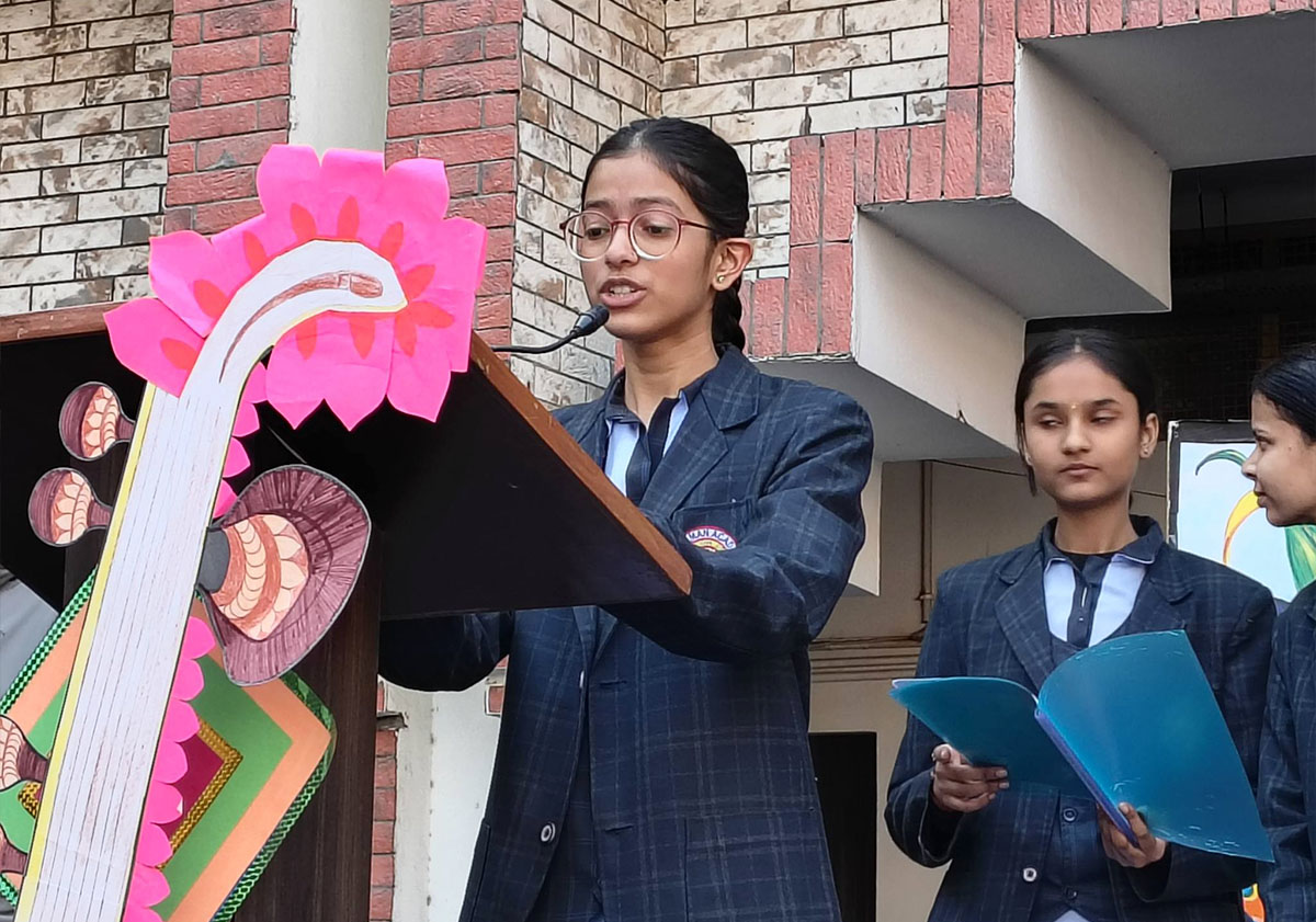 A captivating Special Assembly was conducted for Classes VI to IX to celebrate auspicious occasion of Basant Panchami and the illustrious birth anniversary of the indomitable Netaji Subhash Chandra Bose. The solemn ceremony commenced with the soul-stirring Saraswati Vandana, invoking the divine blessings of Goddess Saraswati, the epitome of wisdom and learning.