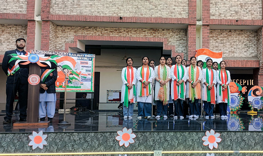 Freedom gave us wings, and the constitution gave us direction. The 77th Republic Day was celebrated in our school, Vardhman Academy, Railway Road, Meerut with unparalleled fervour and patriotic enthusiasm. The celebration began with the unfurling of the tricolour by our honorable Secretary Sir, President Sir and our highly revered members of the Managing committee along with Principal, Vice Principal, staff members and students. As the flag ascended, the national anthem resonated with great elation and Pride. The glimpse of the celebration was an eloquent speech by Tripti Malik. She emphasized in her speech on the sacrifices made by our freedom fighters instilling a sense of gratitude towards them.The dance performance was worth seeing. It was thought provoking as it described the pivotal moments in India's journey towards becoming Republic. The patriotic song was sung by the school chorus that filled the air with the spirit of nationalism.Our esteemed Principal Ms. Rupali Chaudhary, in her address exhorted the students to preserve the hard won freedom and to work tirelessly by building a stronger, more prosperous and harmonious India. The address by our respected President sir encouraged everyone to cherish the values of a great Nation and share responsibilities as its citizens. The words of our highly respected Secretary sir, motivated us. The celebration was testament to schools and unwavering commitment to foster a sense of national pride and unity among the students. The event concluded with the vote of thanks and fervent appeal to strive hard and work tirelessly bright future for self and our motherland.
