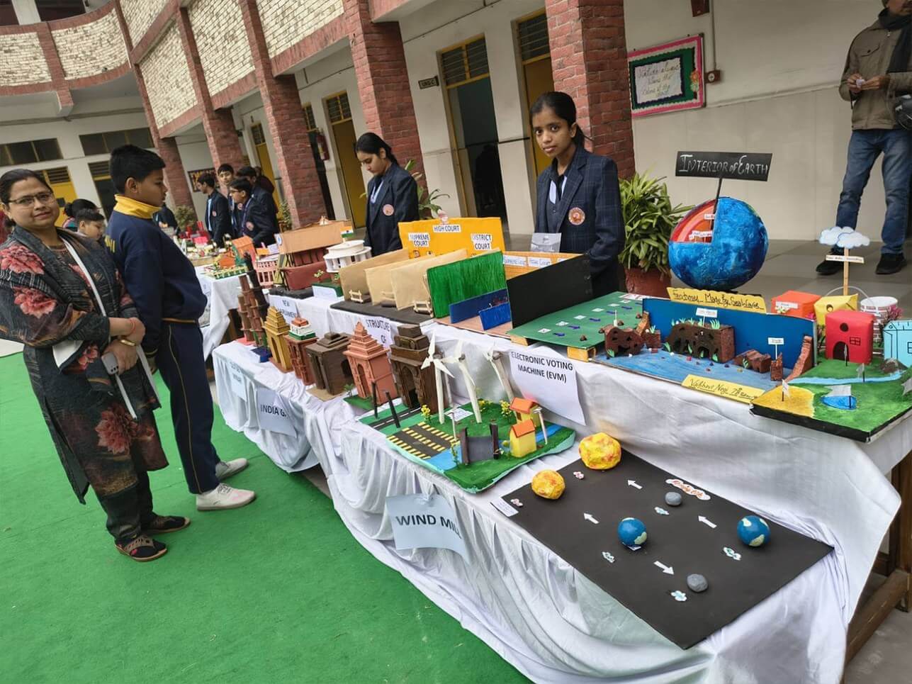 Vardhman Academy, Railway Road, Meerut hosted a vibrant Science and Social Science Exhibition classes (VI to VIII) seamlessly integrated with the Parent–Teacher Meeting (PTM). The exhibition showcased an impressive spectrum of themes, including Water Resources, Layers of the Atmosphere, the Mughal Empire, Vedas, Kedarnath, Windmills, India Gate, Qutub Minar, Old and New Parliament, Crop Protection, Volcanoes, Chandrayaan, the Circulatory and Respiratory Systems, and Hydraulic Power Tracks. Students demonstrated remarkable creativity and scientific temper by designing innovative working models and well-researched projects, reflecting conceptual clarity and hands-on learning. With confidence and enthusiasm, students articulated their ideas, explained mechanisms, and addressed queries, transforming the exhibition into an engaging and enriching learning experience for parents and visitors alike.