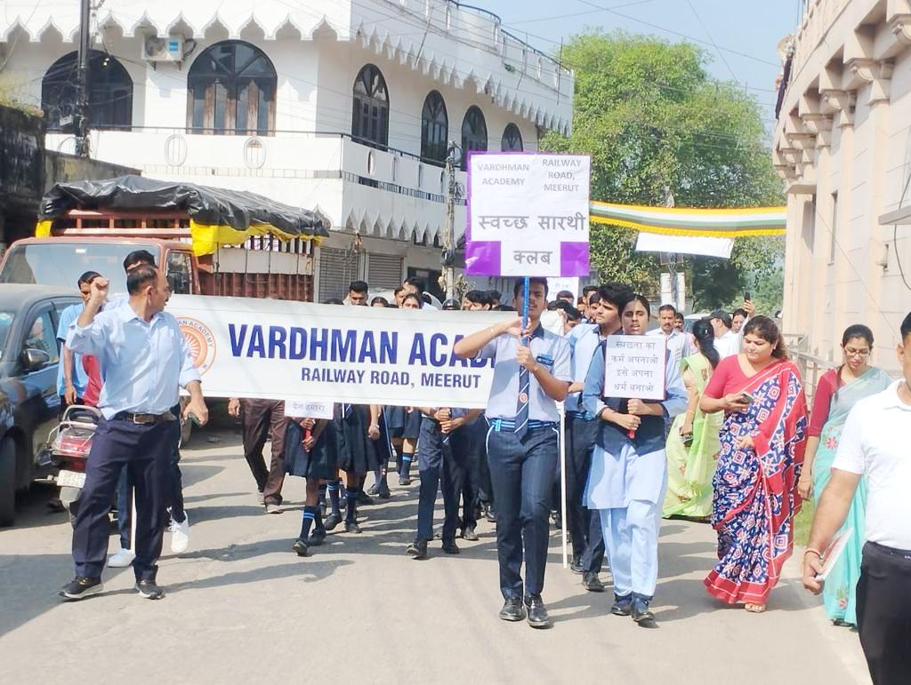 On October 1, 2023, Vardhman Academy,Railway Road,Meerut carried out a cleanliness drive as part of the Swachh Bharat Mission initiated by the Government of India. This event was organized by the Swachh Sarathi Club of school students under the able guidance of Principal Mrs. Rupali Chaudhary, along with the support and active participation of dedicated teachers of the school.