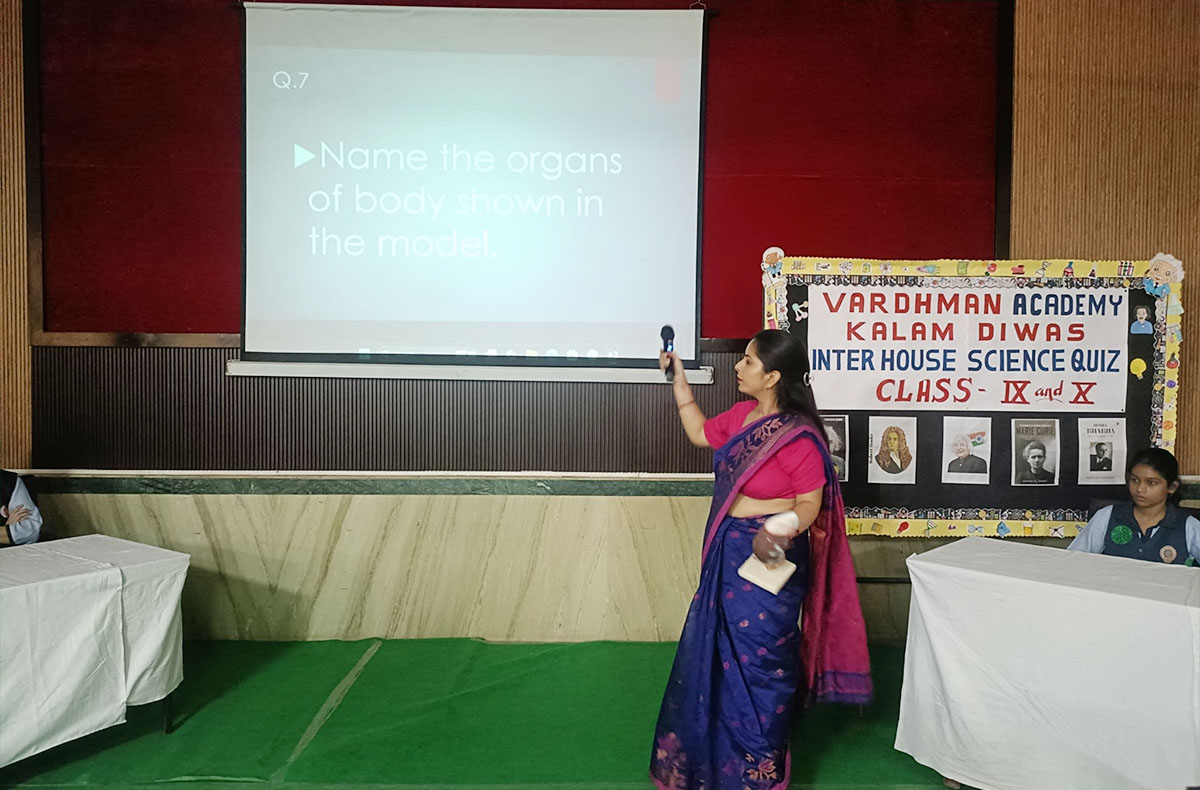 To commemorate the birth anniversary of our beloved Missile Man of India, Dr. A.P.J. Abdul Kalam, an Inter-House Science Quiz Competition was successfully organized at Vardhman Academy Railway Road Meerut, to ignite the scientific curiosity and analytical thinking among students. The event witnessed enthusiastic participation from the four Houses — Ashoka House, Jawahar House, Shivaji House, and Tagore House.