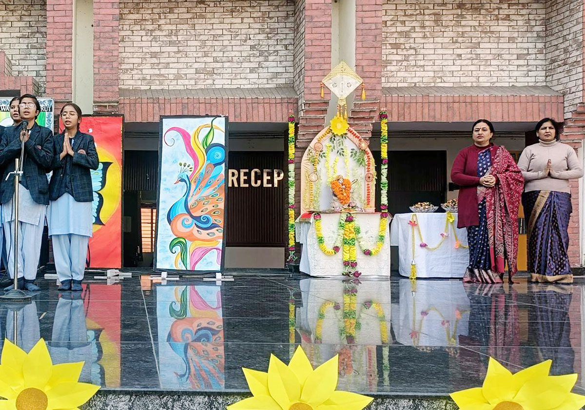 A captivating Special Assembly was conducted for Classes VI to IX to celebrate auspicious occasion of Basant Panchami and the illustrious birth anniversary of the indomitable Netaji Subhash Chandra Bose. The solemn ceremony commenced with the soul-stirring Saraswati Vandana, invoking the divine blessings of Goddess Saraswati, the epitome of wisdom and learning.