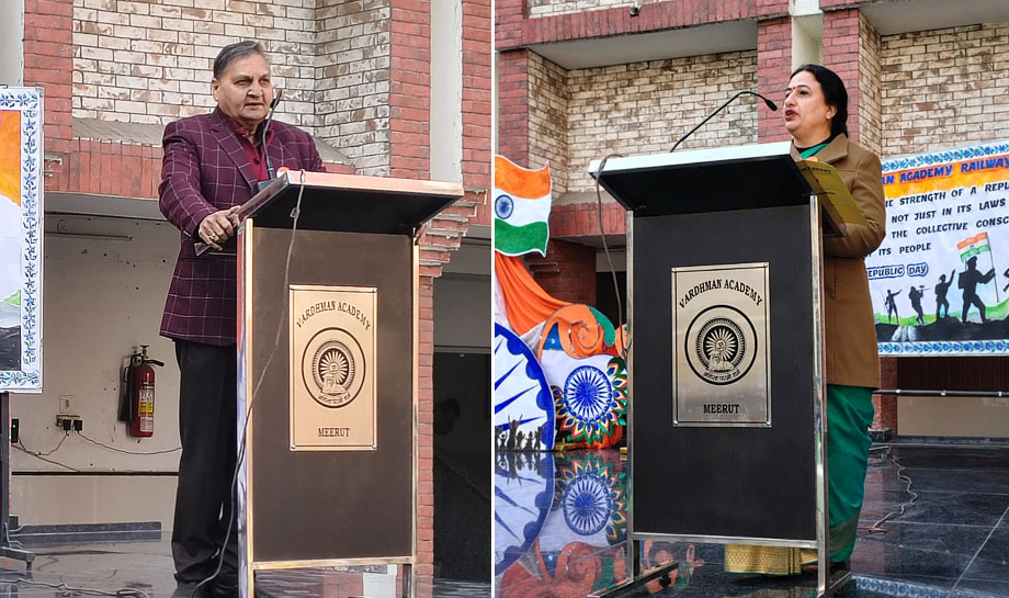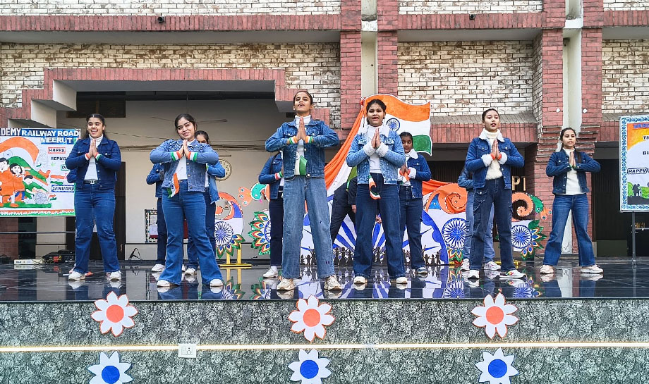 Freedom gave us wings, and the constitution gave us direction. The 77th Republic Day was celebrated in our school, Vardhman Academy, Railway Road, Meerut with unparalleled fervour and patriotic enthusiasm. The celebration began with the unfurling of the tricolour by our honorable Secretary Sir, President Sir and our highly revered members of the Managing committee along with Principal, Vice Principal, staff members and students. As the flag ascended, the national anthem resonated with great elation and Pride. The glimpse of the celebration was an eloquent speech by Tripti Malik. She emphasized in her speech on the sacrifices made by our freedom fighters instilling a sense of gratitude towards them.The dance performance was worth seeing. It was thought provoking as it described the pivotal moments in India's journey towards becoming Republic. The patriotic song was sung by the school chorus that filled the air with the spirit of nationalism.Our esteemed Principal Ms. Rupali Chaudhary, in her address exhorted the students to preserve the hard won freedom and to work tirelessly by building a stronger, more prosperous and harmonious India. The address by our respected President sir encouraged everyone to cherish the values of a great Nation and share responsibilities as its citizens. The words of our highly respected Secretary sir, motivated us. The celebration was testament to schools and unwavering commitment to foster a sense of national pride and unity among the students. The event concluded with the vote of thanks and fervent appeal to strive hard and work tirelessly bright future for self and our motherland.