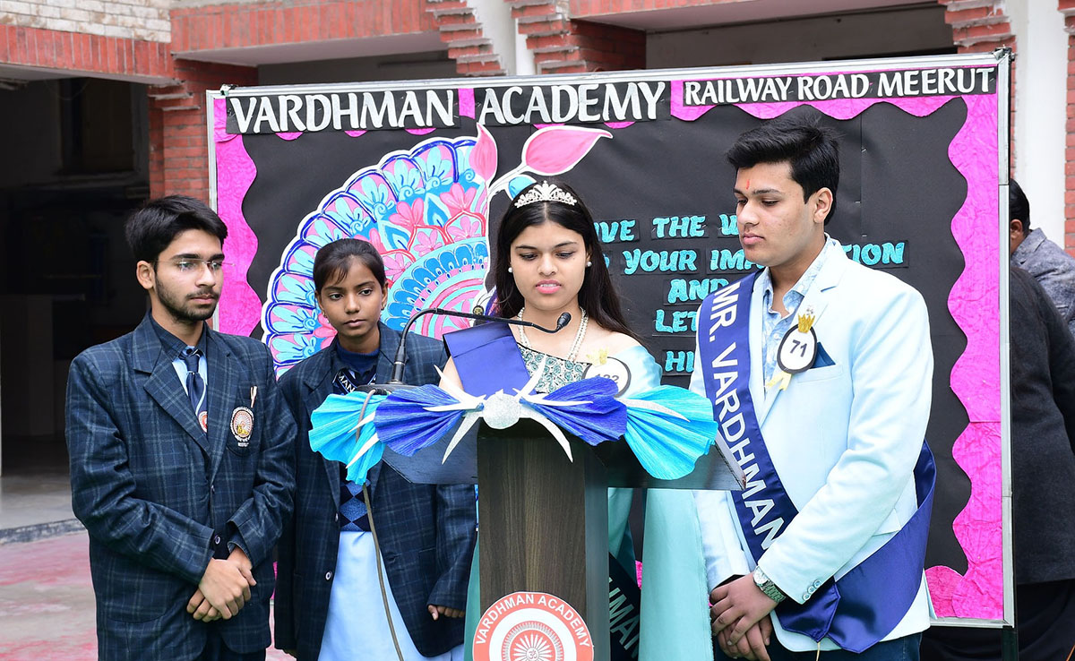 Vardhman Academy, Railway Road, Meerut organized a Farewell Ceremony for the Class XII students which proved to be a dignified and emotionally enriching occasion. The event celebrated not only the culmination of the students' school journey but also the promise of their future endeavours. Filled with nostalgia, gratitude, and pride, the ceremony brought teachers and students together to honour years of shared learning, growth, and perseverance. It marked the graceful conclusion of a significant chapter and the confident beginning of a new path brimming with aspirations, responsibilities, and limitless possibilities.